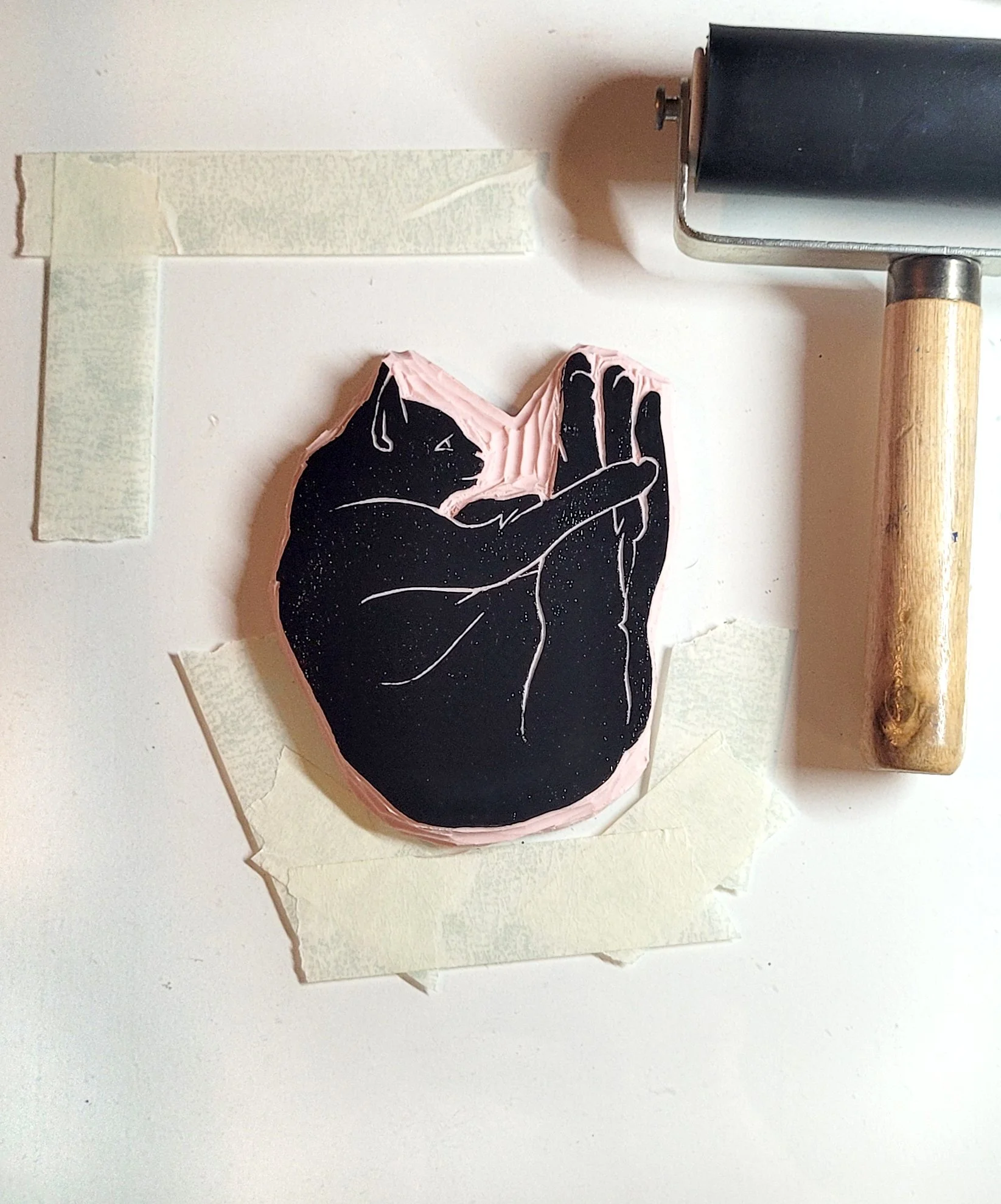 Printing Process of 'Where Is My Sunshine' Lino Print 2023.